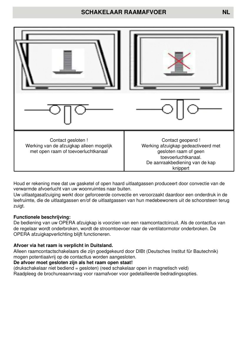 De bediening van uw OPERA afzuigkap is voorzien van een raamcontactcircuit. Als de contactlus van