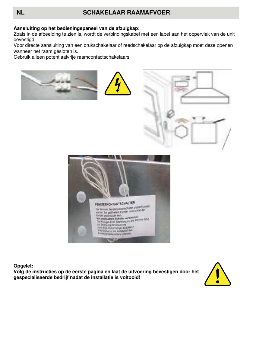 Gebruik alleen potentiaalvrije raamcontactschakelaars