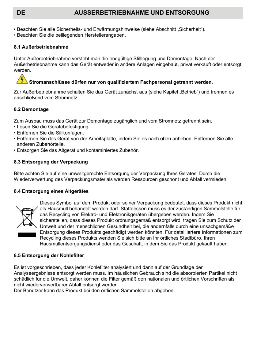 Außerbetriebnahme kann das Gerät entweder in andere Anlagen eingebaut, privat verkauft oder entsorgt