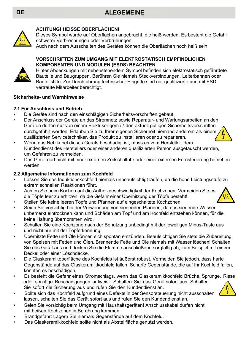 2.2 Allgemeine Informationen zum Kochfeld