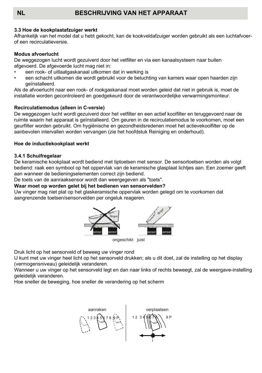 Uw vinger mag niet plat op het glaskeramische oppervlak worden gelegd om te voorkomen dat