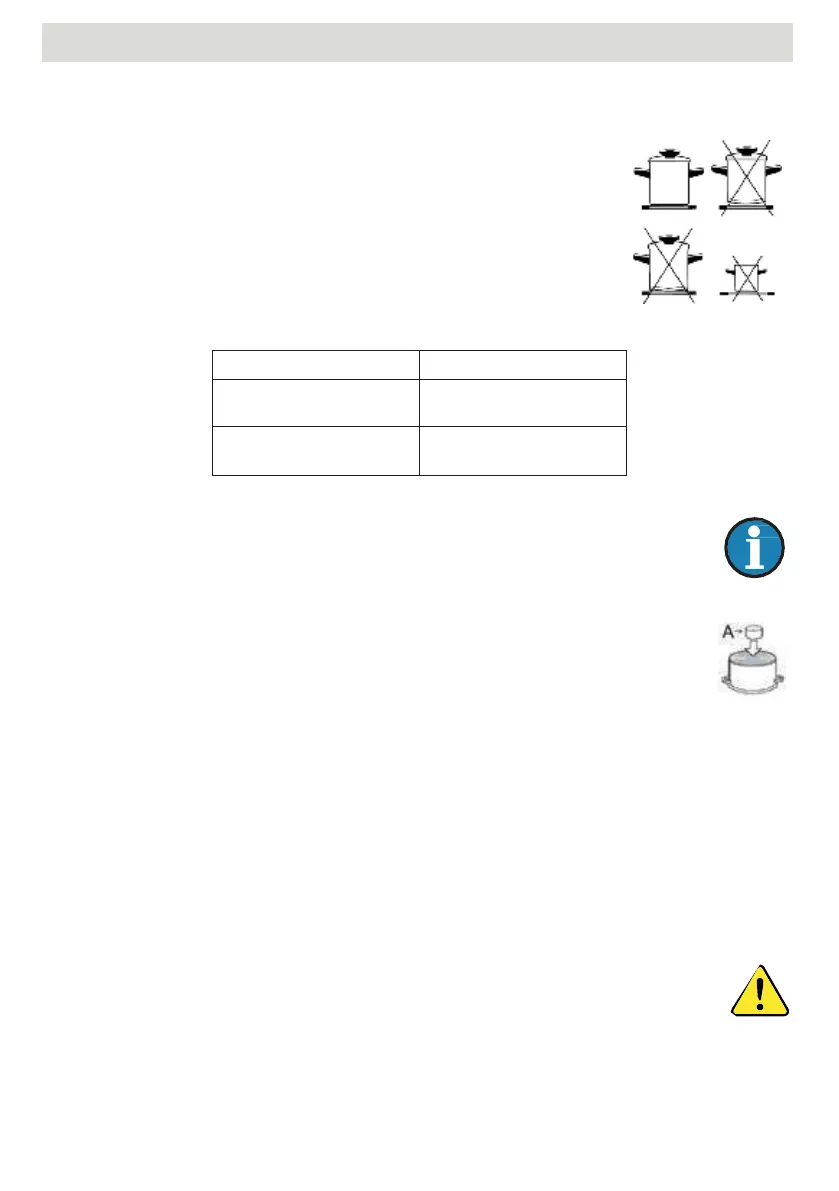 • De pan moet tijdens het koken in het midden van de kookplaat staan.