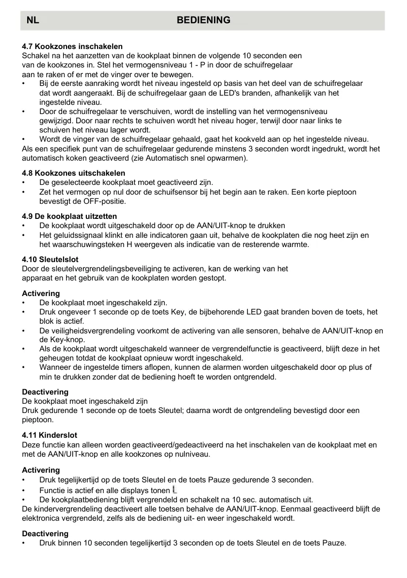 • De kookplaatbediening blijft vergrendeld en schakelt na 10 sec. automatisch uit.