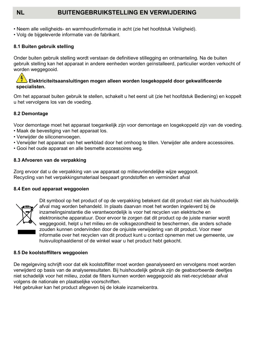 8.1 Buiten gebruik stelling