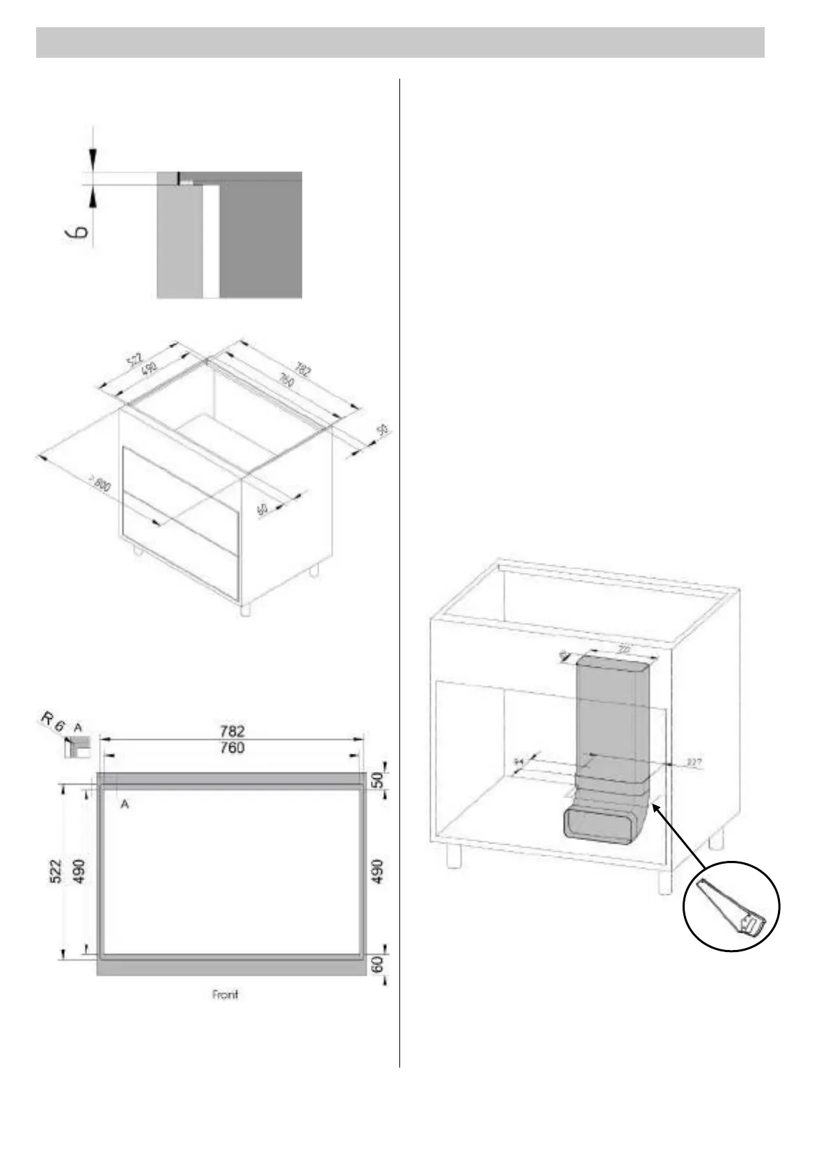 x Bottom panel of the floor unit must be cut for the air