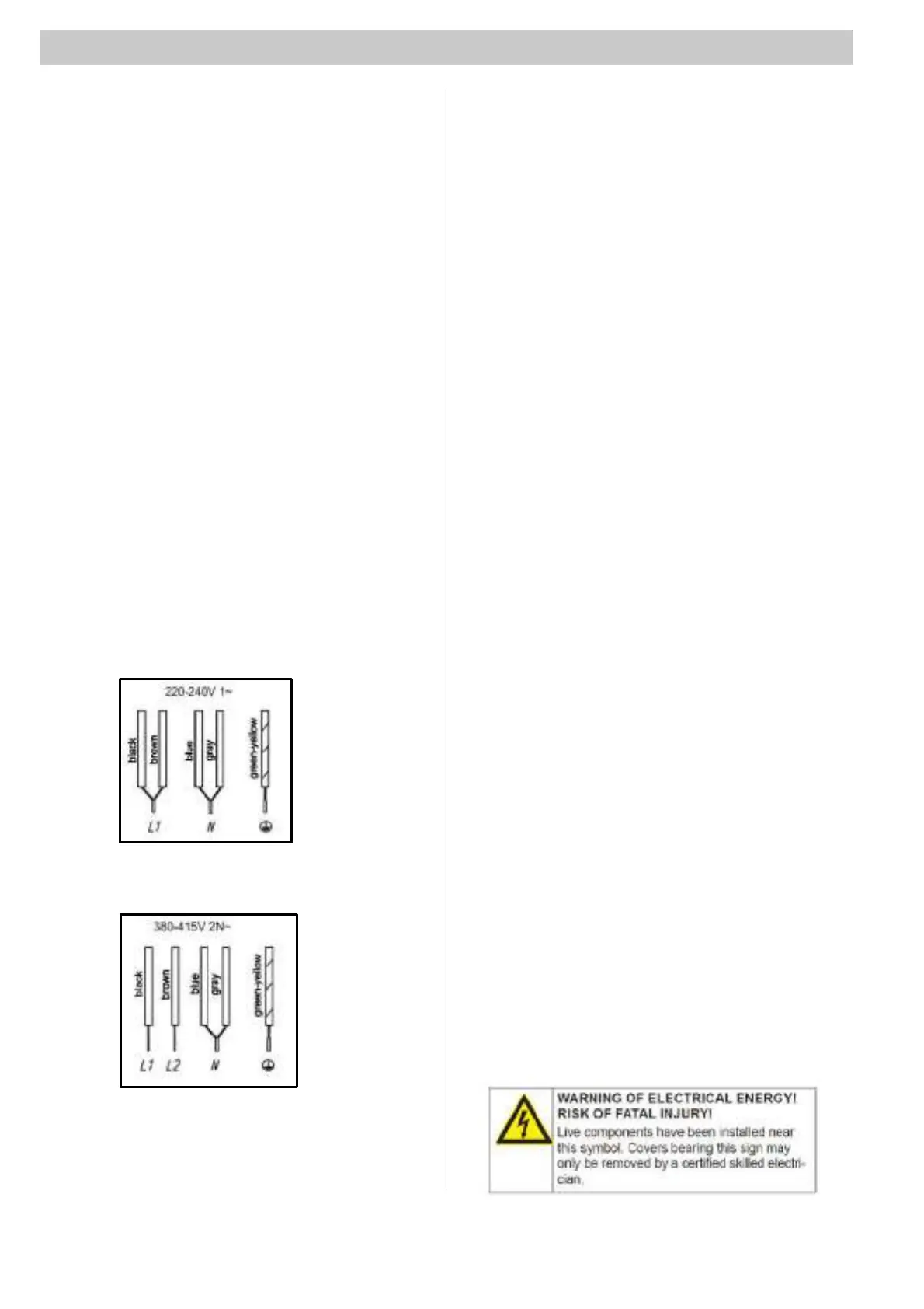 1N 220 – 240 V 50/60 Hz 5 x 1.5 mm