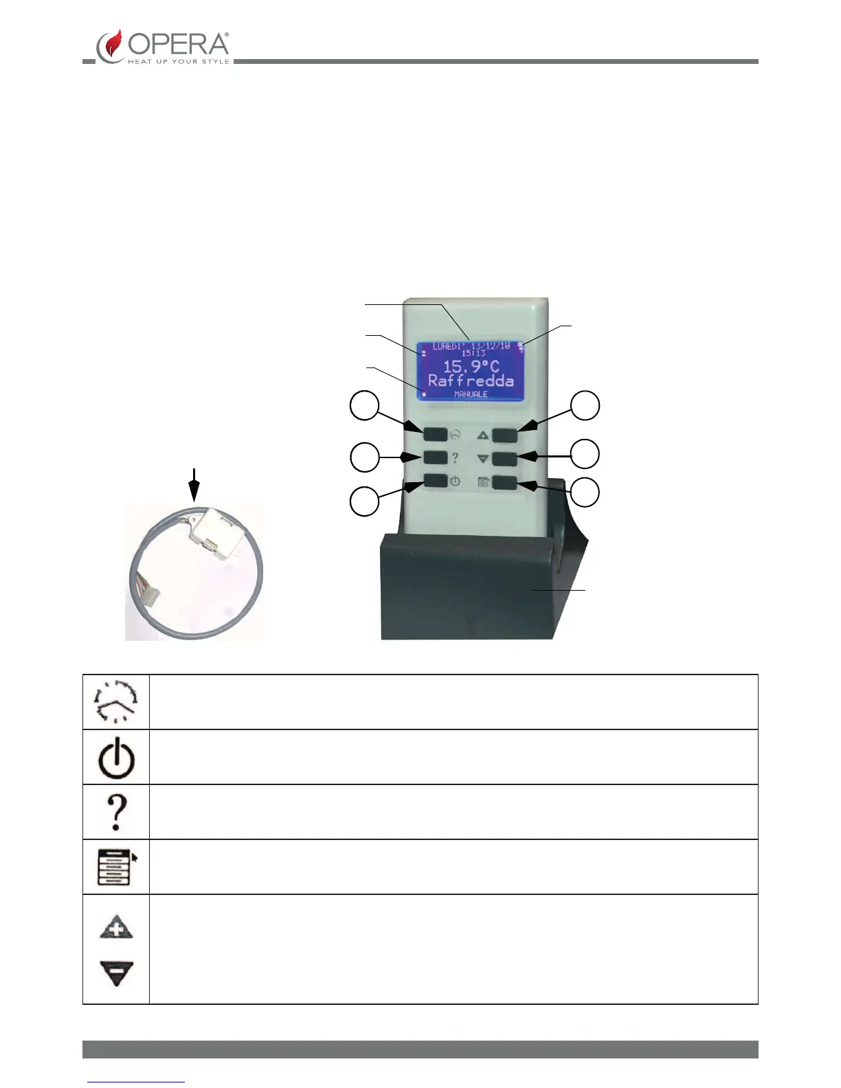The hand-held remote control is made up from the following components provided in the Q9 inserts (optional in the stoves):
