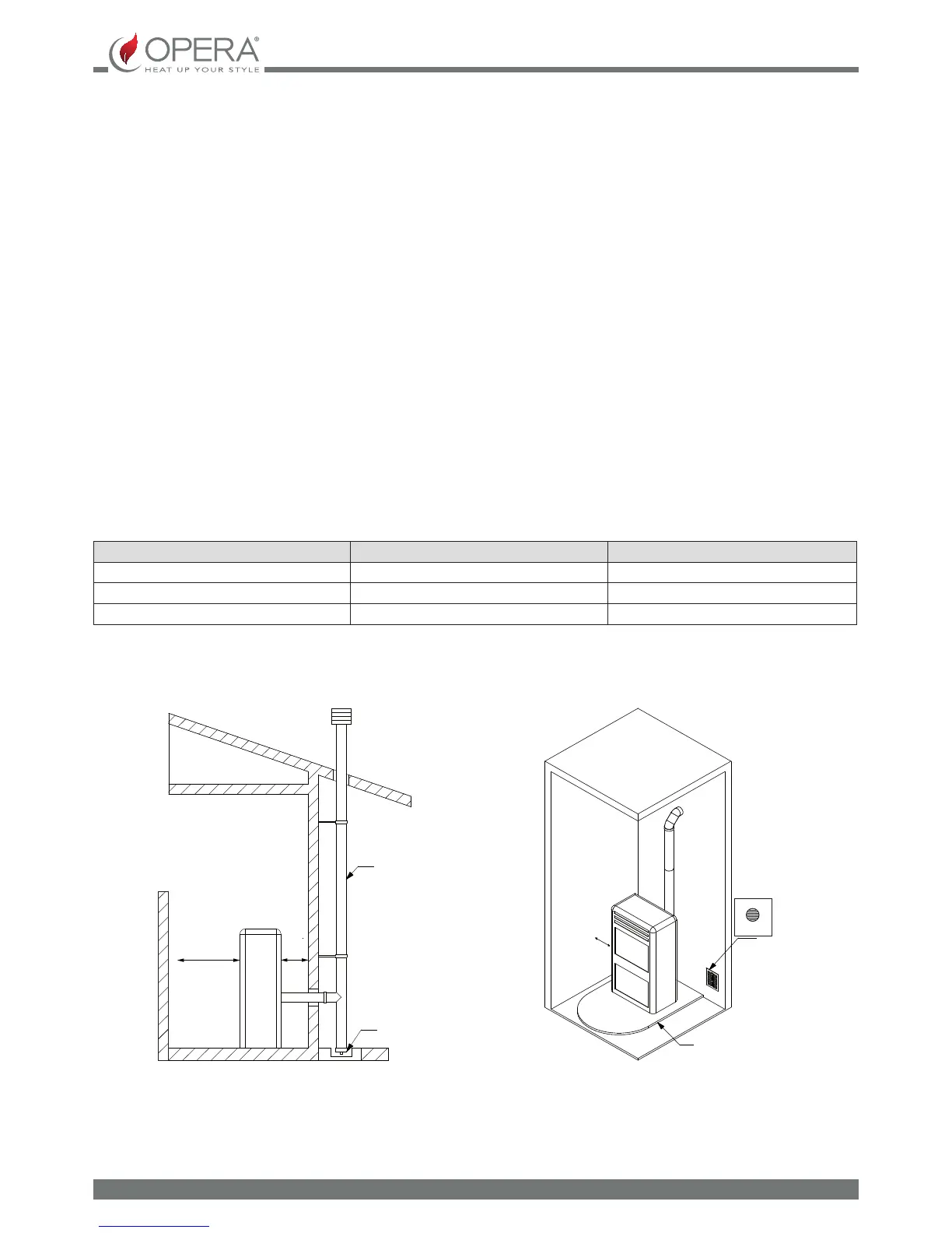 The adjacent, side and rear walls and the supporting surface must be made of non-combustible material according to the table