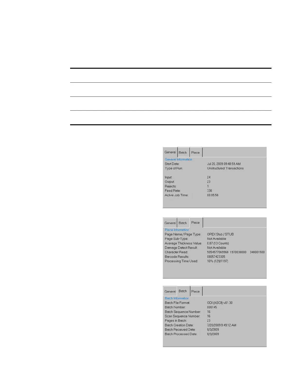 Batch Information includes data such as the transaction number, pages in the batch, and the date and