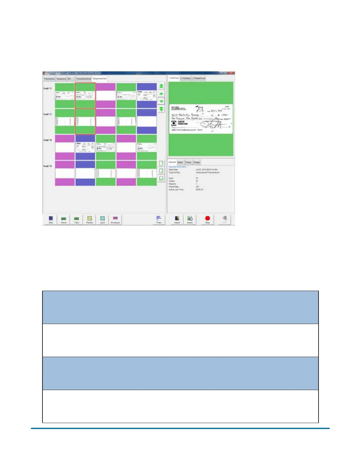 thumbnail. Piece information may include the bin the piece was sorted to,