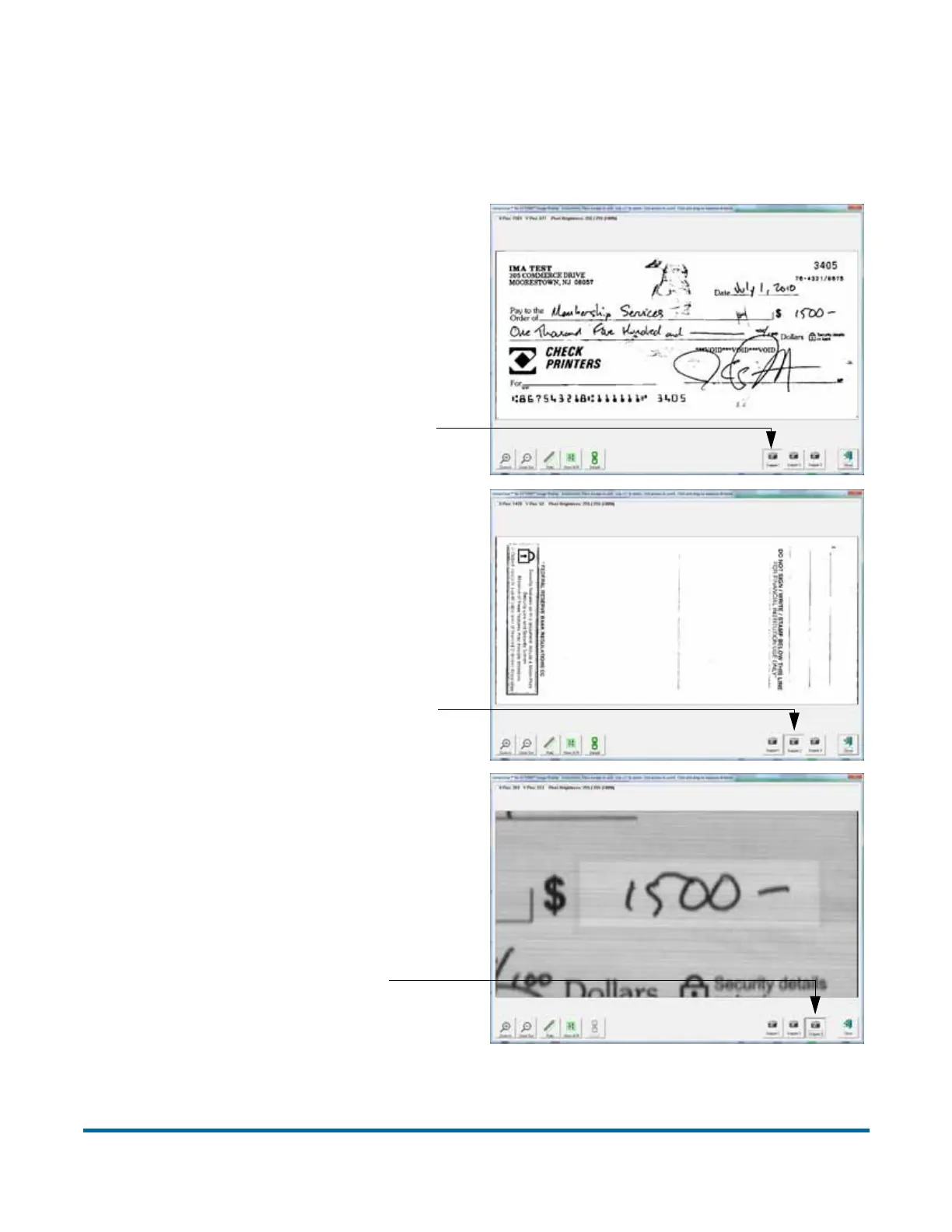 up to capture images of specific parts of the check, such as the back of the