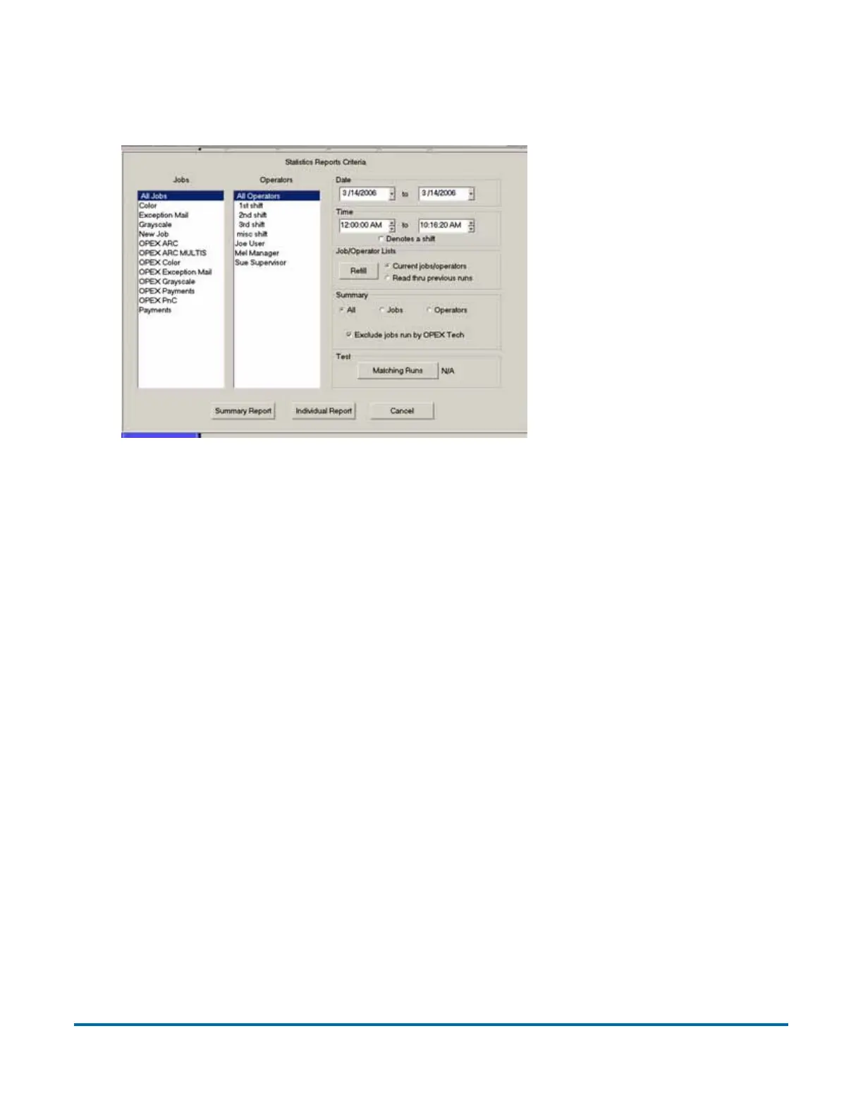 Figure 24: Statistics Reports Criteria screen