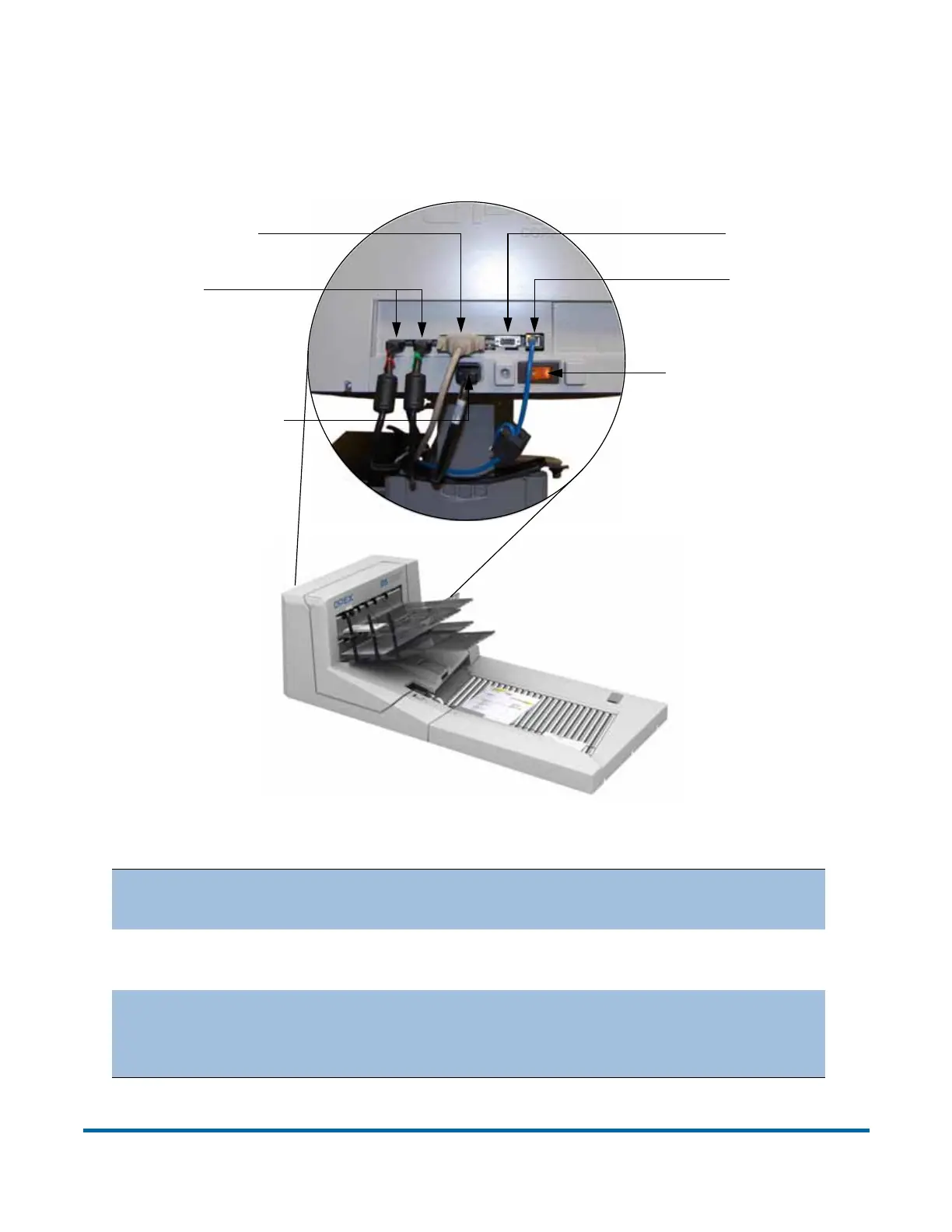 The DS2200 has several connectors and ports for connecting the scanner to