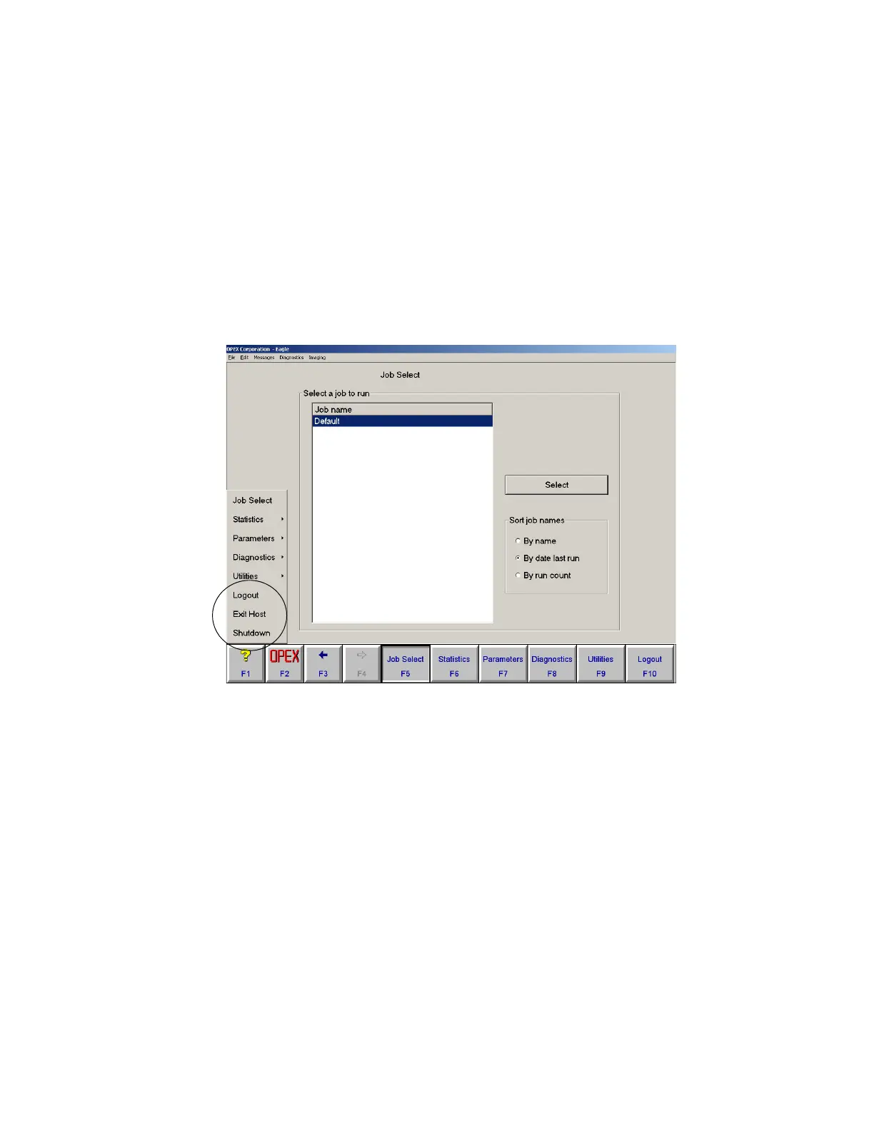 1 Click OPEX (F2). A menu appears listing several options, including the options for