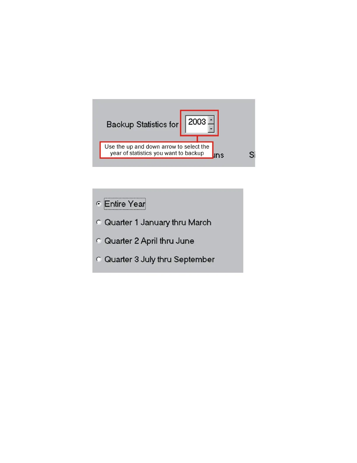 2 In the Backup Statistics for field, use the up and down arrow to select the year of