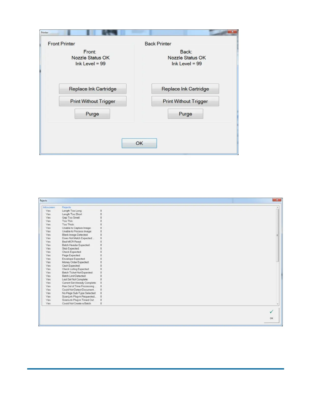The Printer Information window provides access to printer maintenance