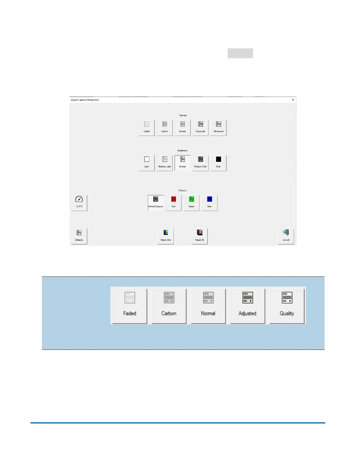 The Adjust Capture Parameters screen will appear, where you can modify the