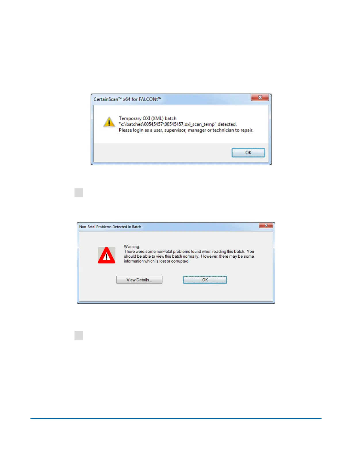 Figure 4-57: Non Fatal Problems Detected in Batch - Error Message