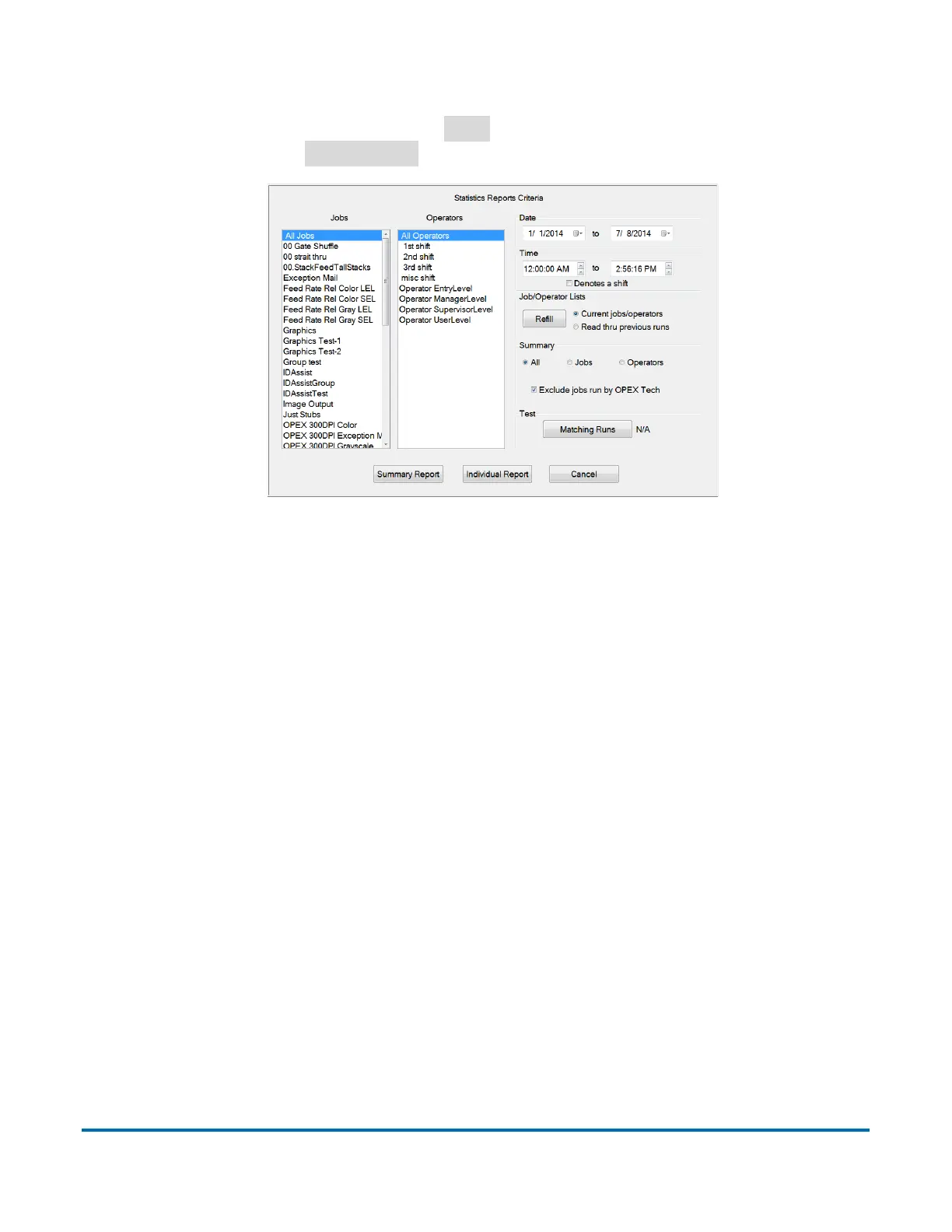 - Operators (Bediener) – Wählen Sie den/die Bediener und/oder die Schicht aus,