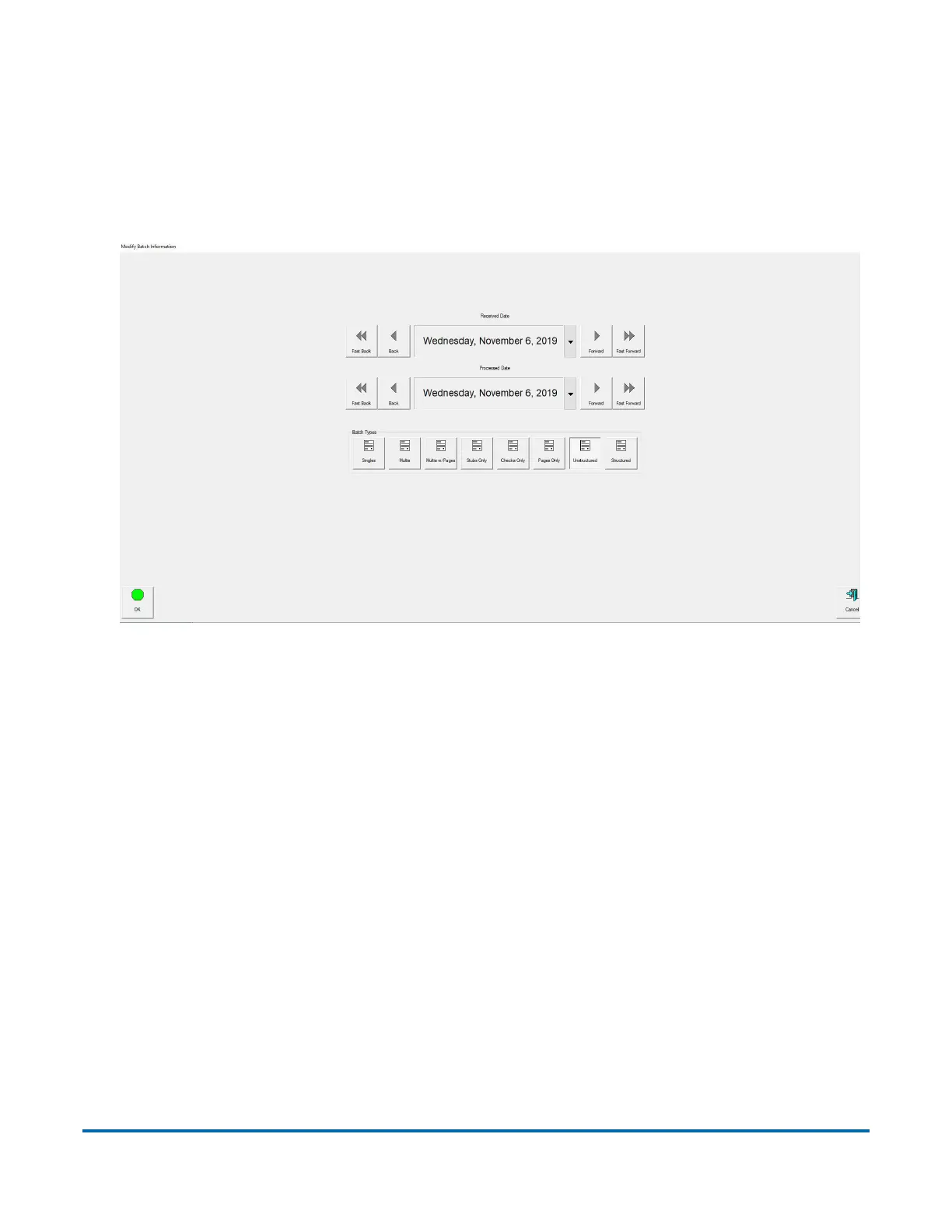 tionsbildschirm, um ein Datum für „erhalten“, „verarbeitet“ sowie die Art von Batch
