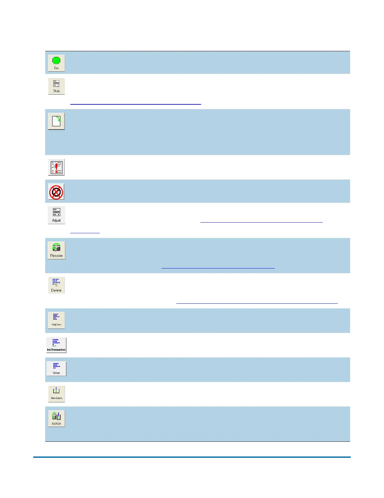 batch parameters. See “Rescanning Items” on page 84