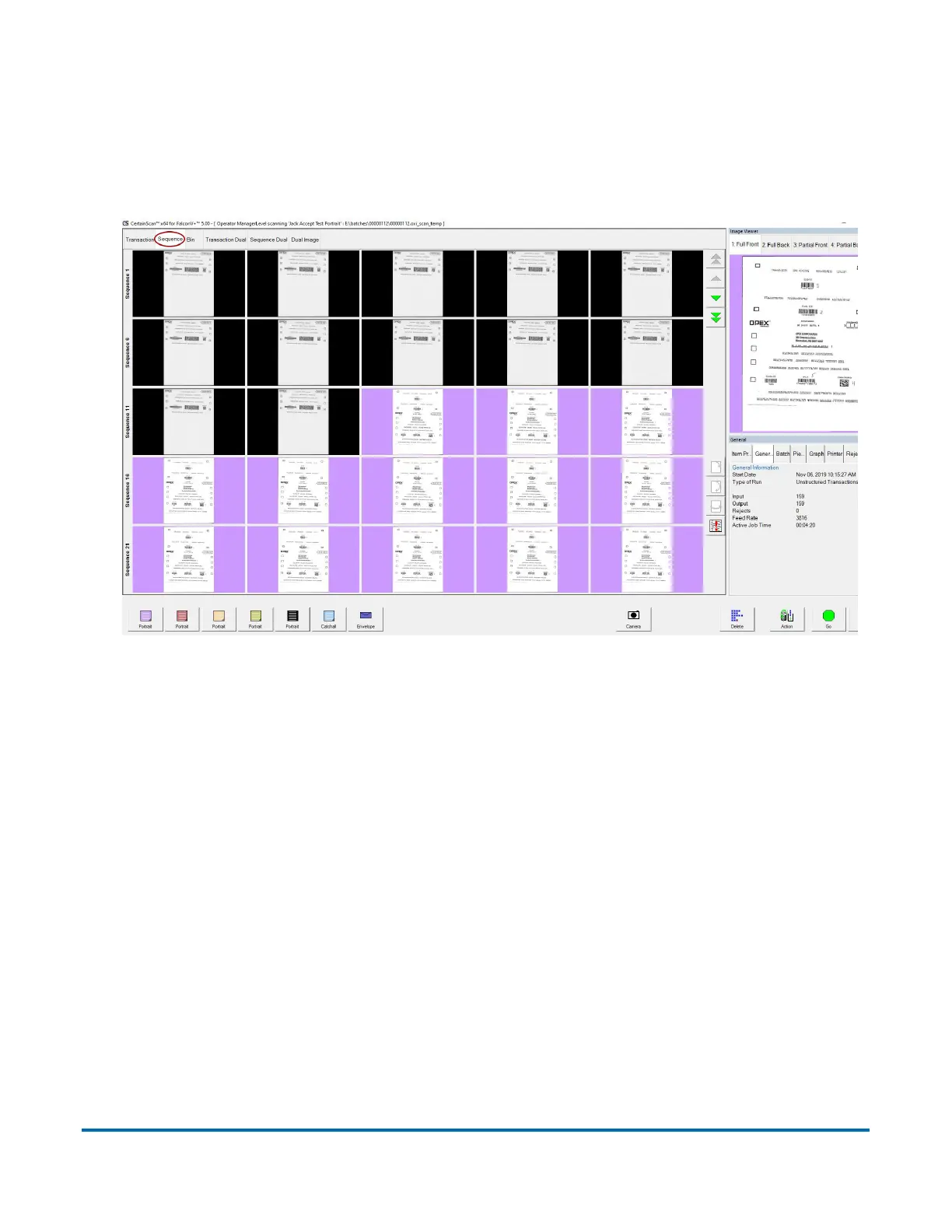 Die Ansicht „Sequenz“ zeigt alle Schriftstücke von links nach rechts in der