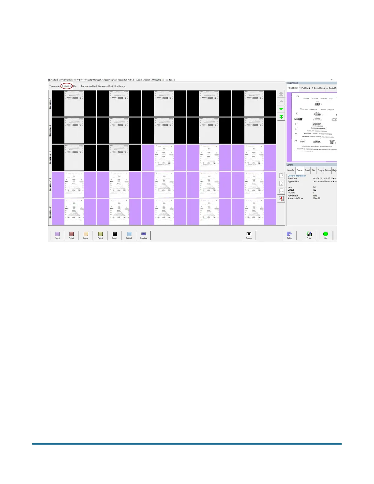 The sequence view displays all of the pieces in the order they were scanned