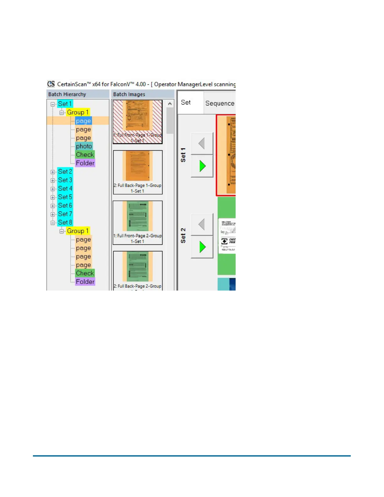 showing the Set-Group relationship in a branched file tree format. Clicking