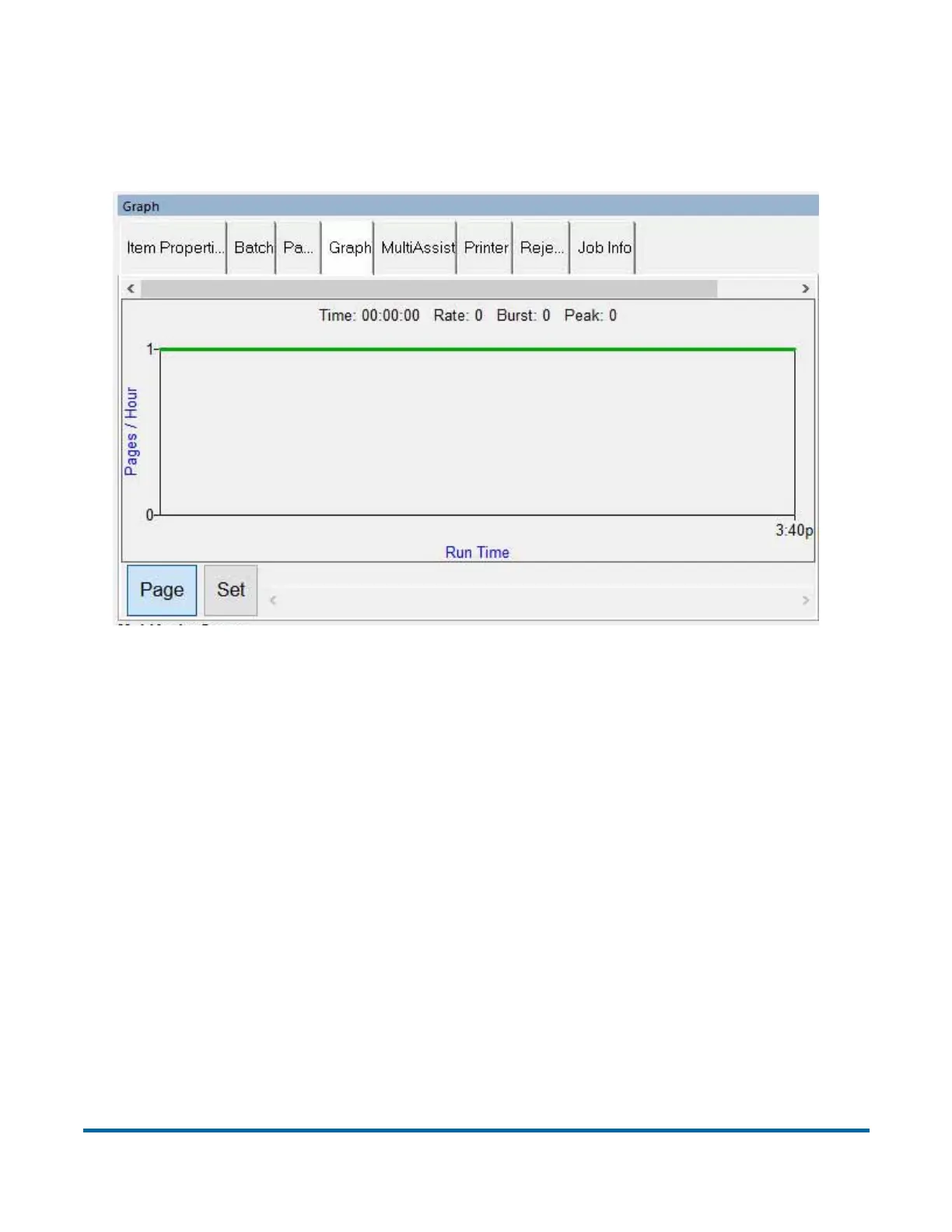 Displays processing performance information such as run time, pages per hour