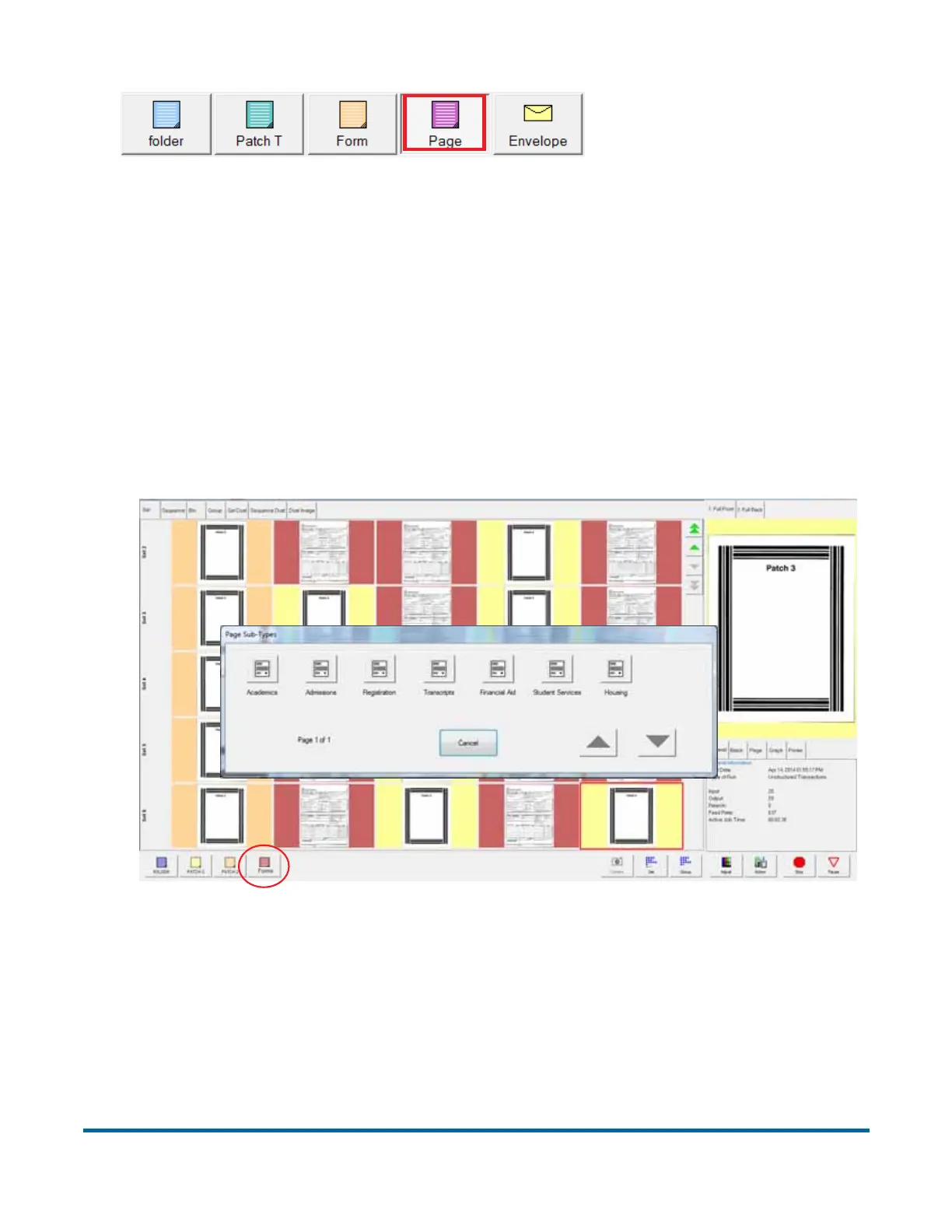 you are scanning forms into the system, press the Forms page type button
