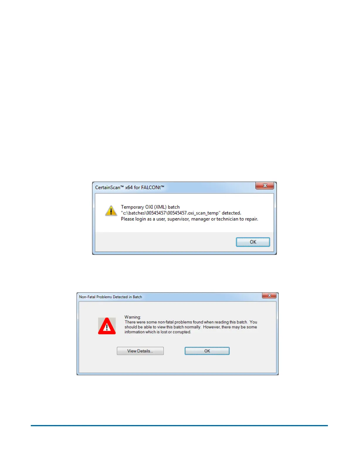 Figure 25: Non Fatal Problems Detected in Batch - error message