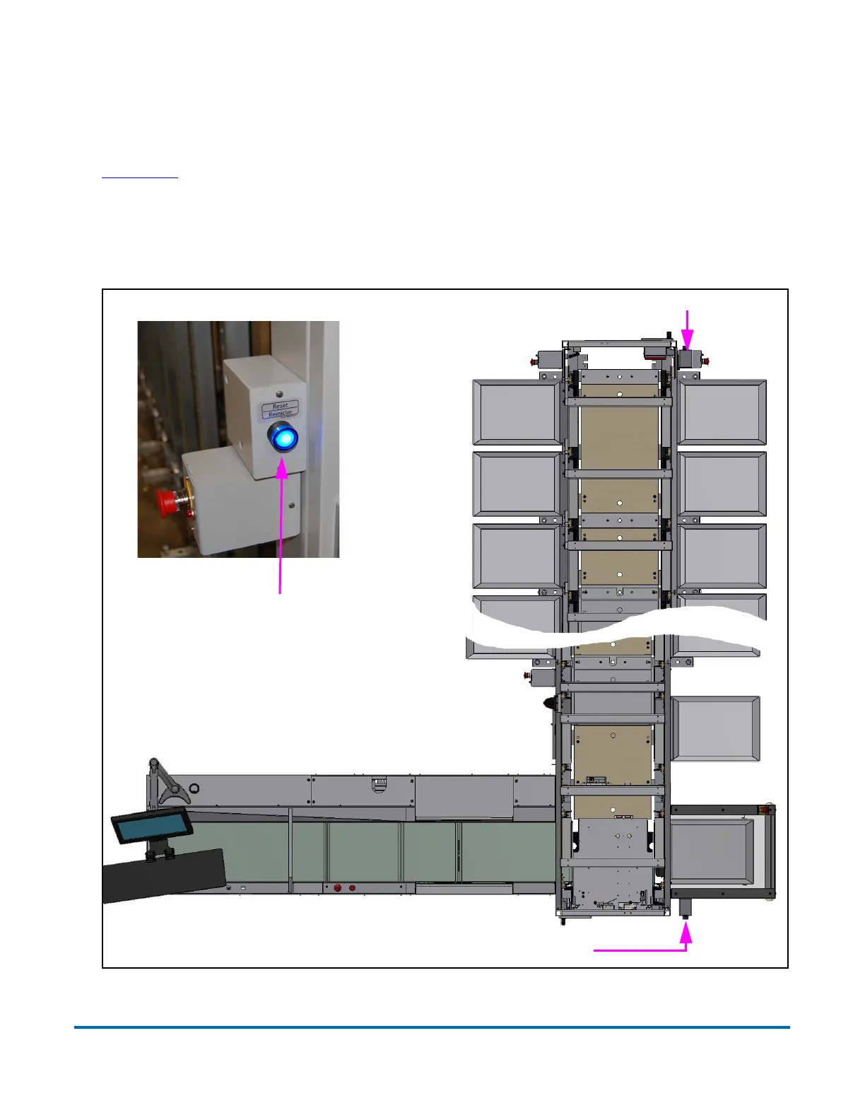 Niebieskie przyciski resetowania znajdują się z prawej strony z przodu i tyłu maszyny