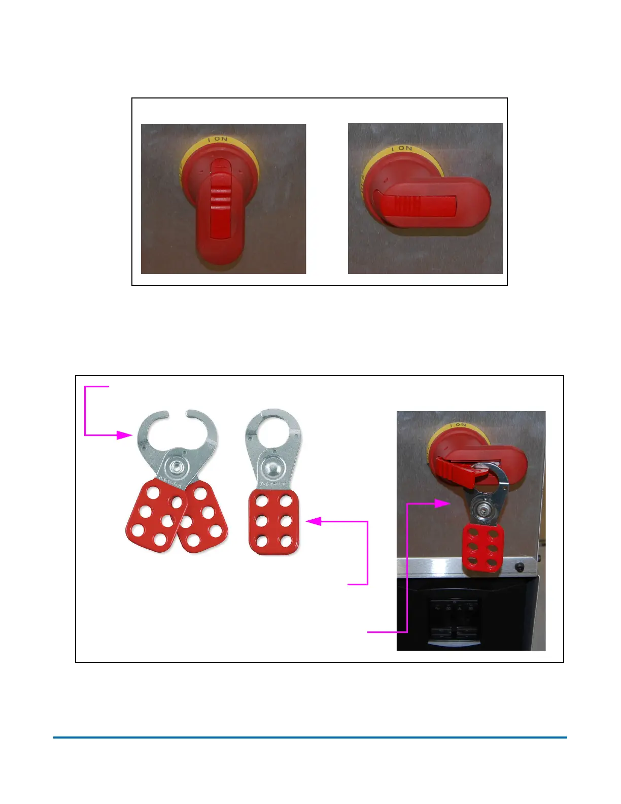 8. Pull the tab out on the main disconnect switch handle and place a hasp