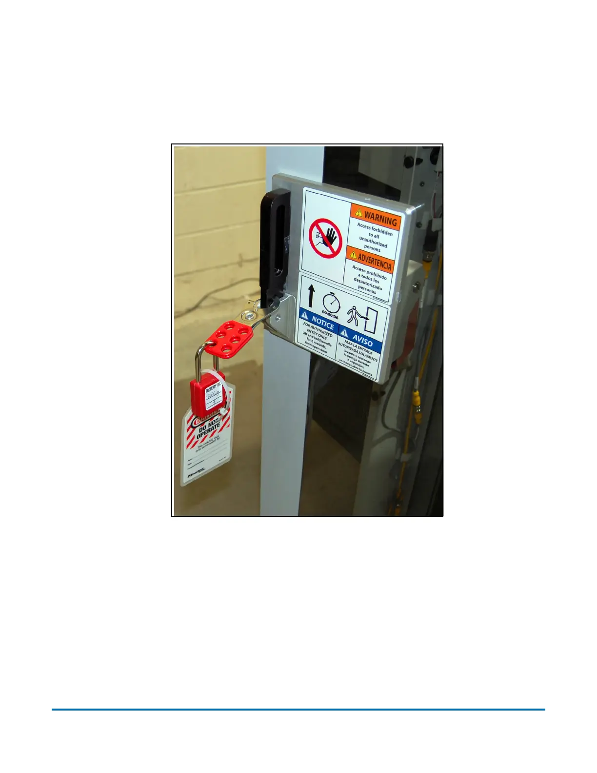 7. Insert a padlock into one of the holes in the hasp. Each person working on