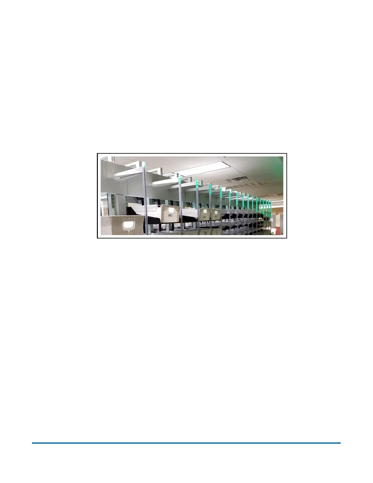 The optional Pack-to-Light (PTL) feature consists of a strip of lights that can be