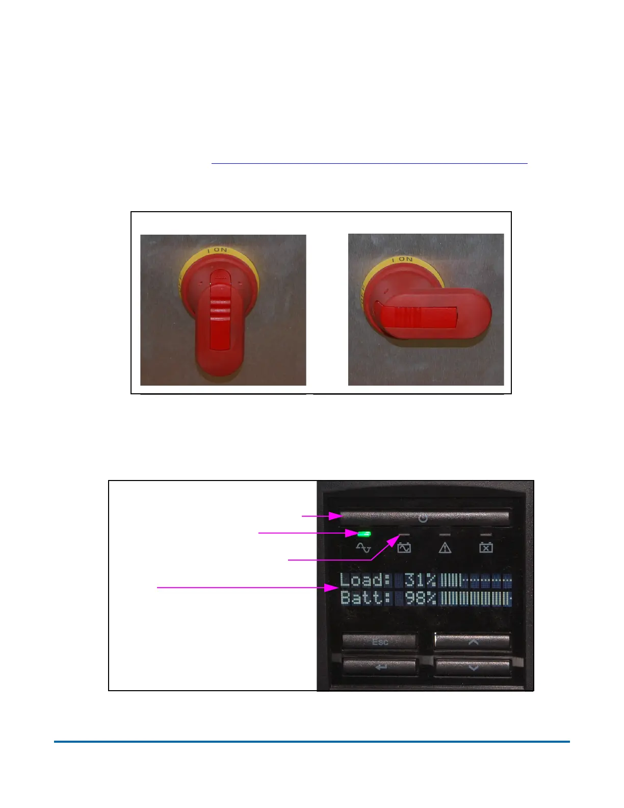 2. Nacisnąć przycisk zasilania z przodu modułu UPS. Sprawdzić, czy zielona dioda