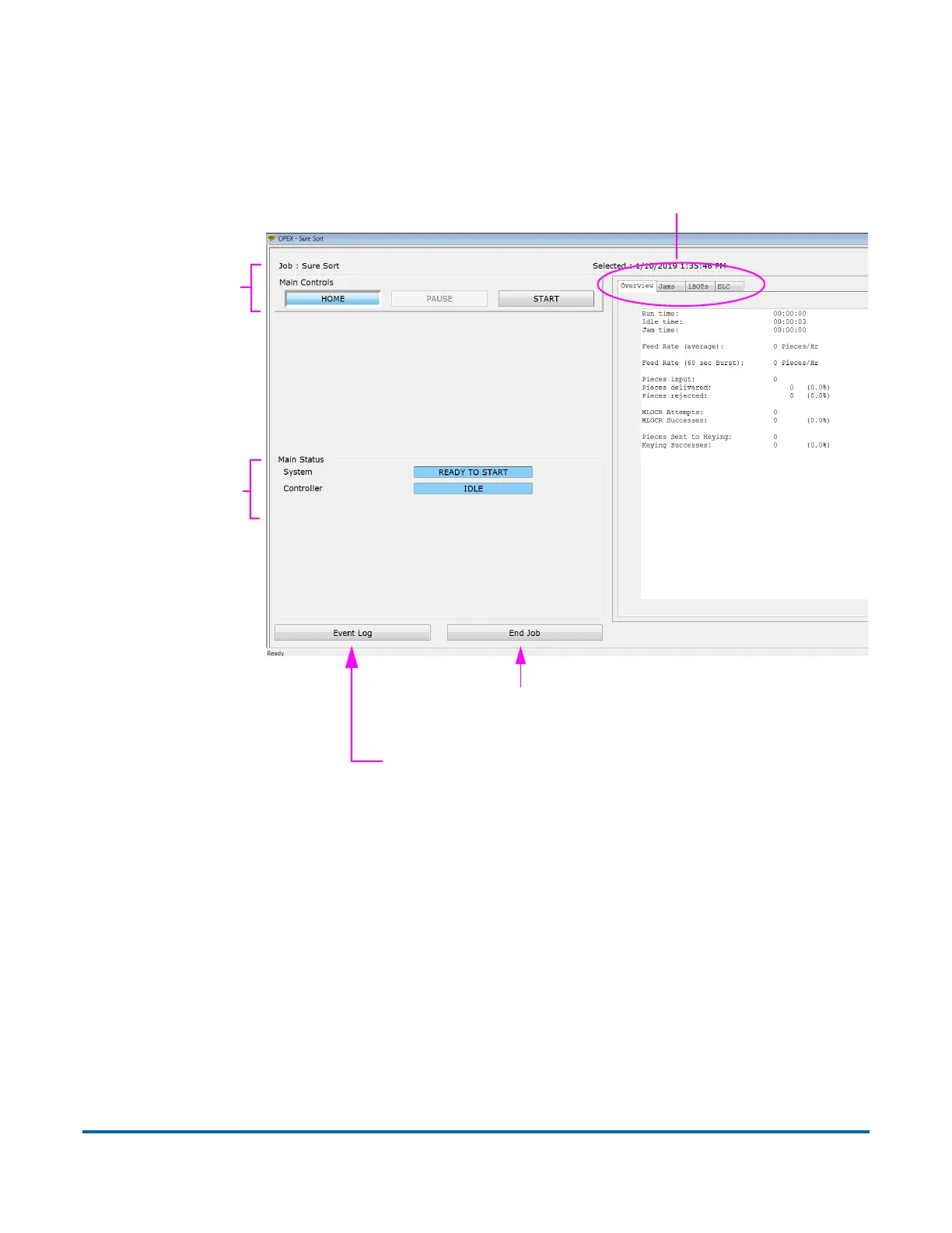 Rysunek 4-25: główne elementy sterujące, strefa statusu głównego i zakładki