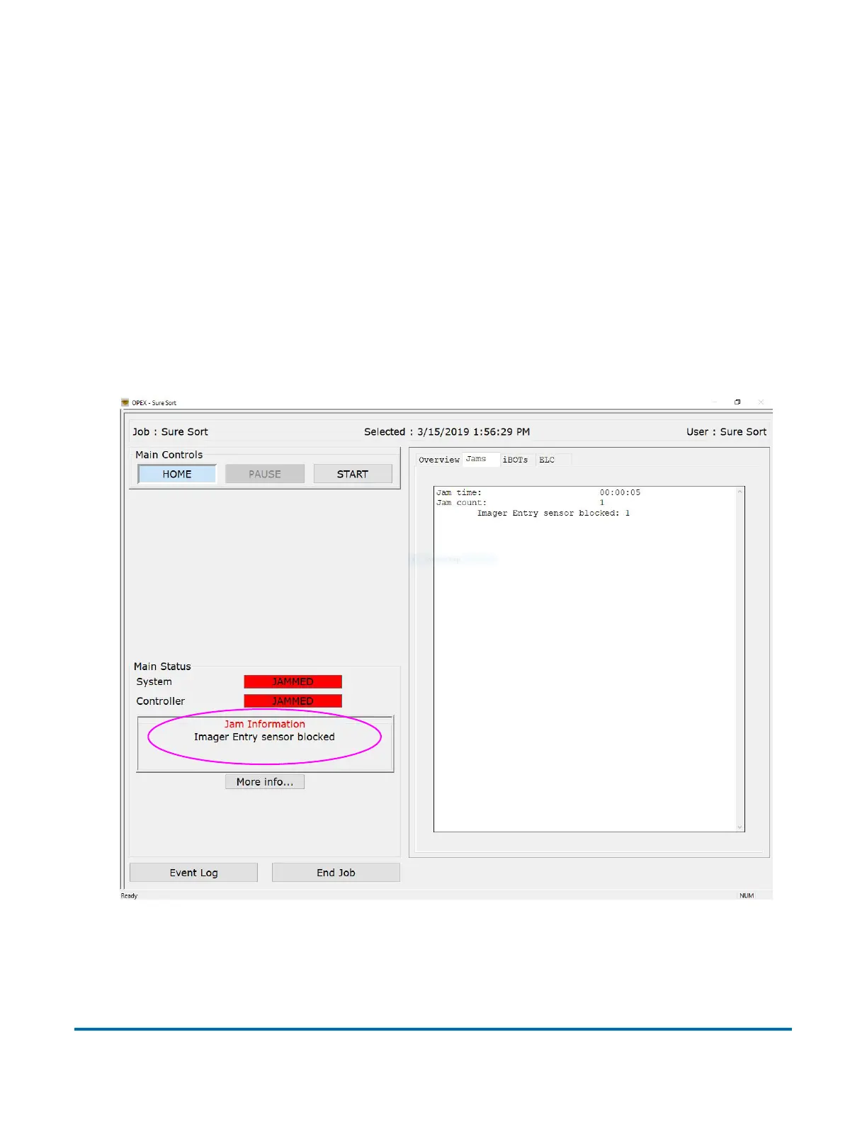 When a jam occurs, the Run screen will alert you as to where the jam has
