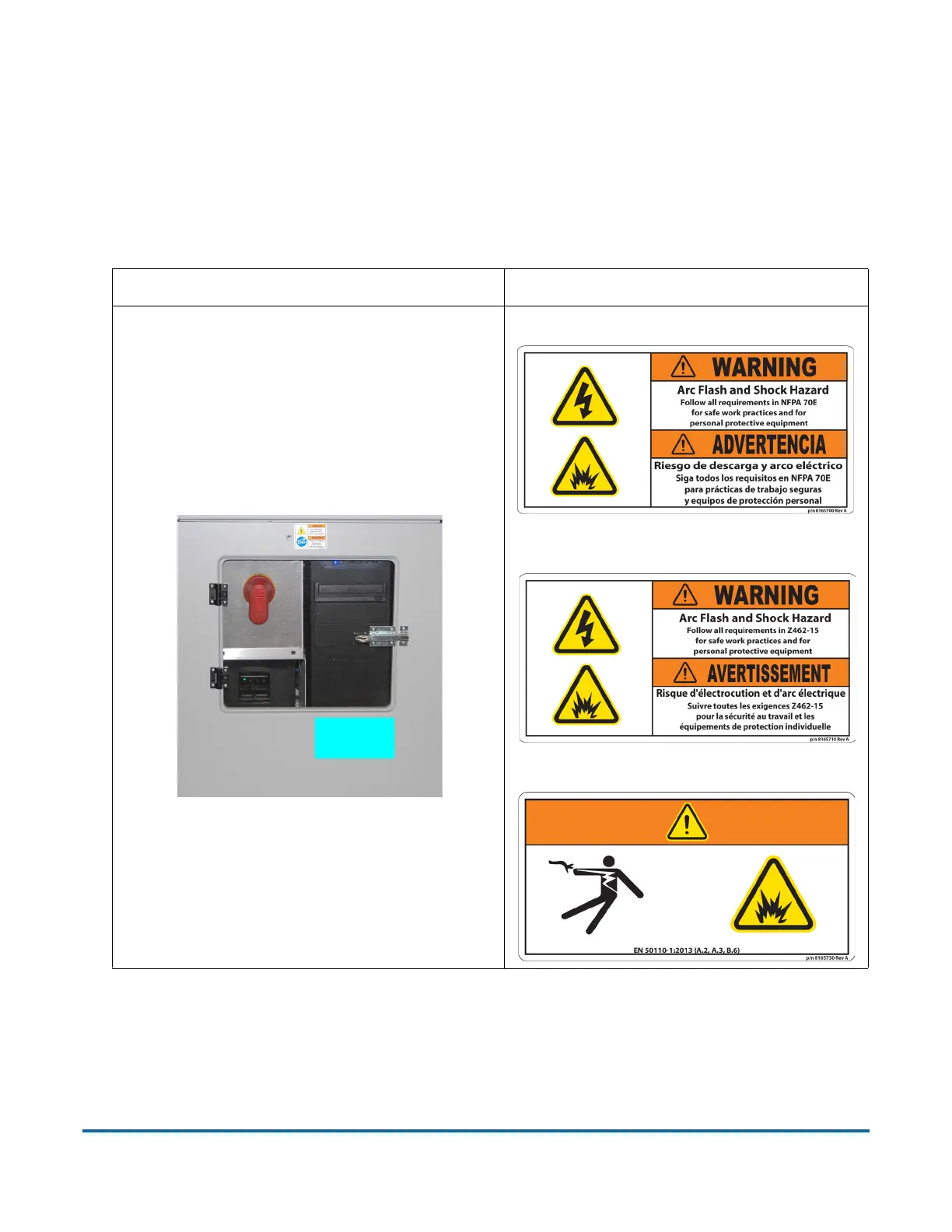 Table 2-3: Arc Flash and Shock Hazard label