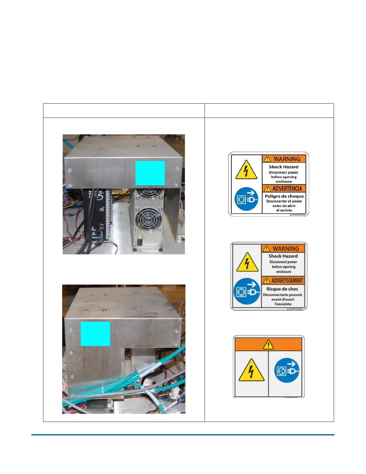 Purpose: Warns about electrical hazard inside, and to disconnect power before
