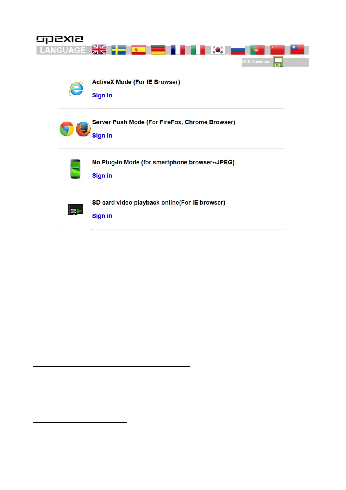 For first time login, please download OCX software (or run in the CD) and install it. Also