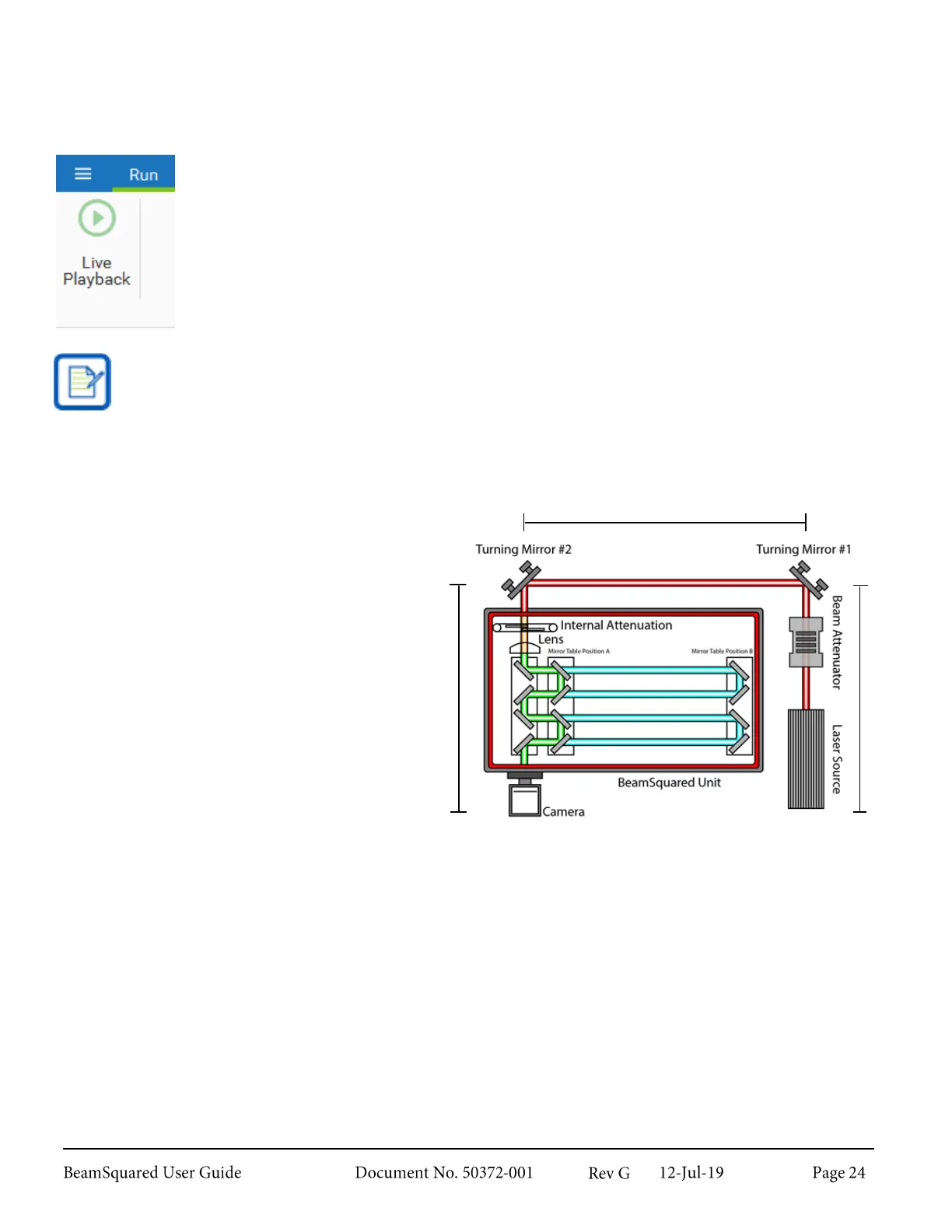 a video feed in the 2D Beam Display window. Enable Live Playback on the Run ribbon to