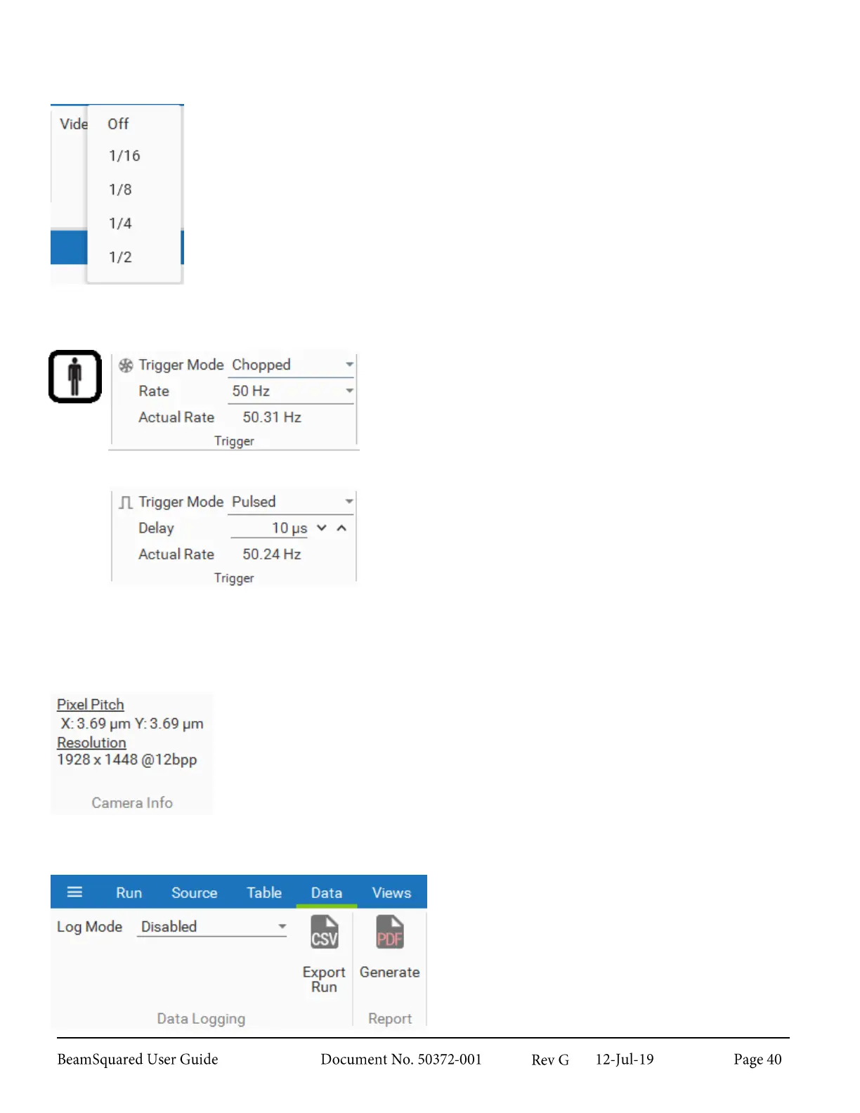 Video Trigger allows capturing laser pulses without the use of a trigger cable. The