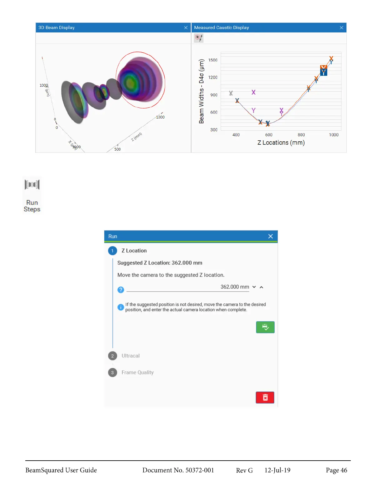 This button opens and closes the Step by Step wizard. To start a run, click Start in the Source