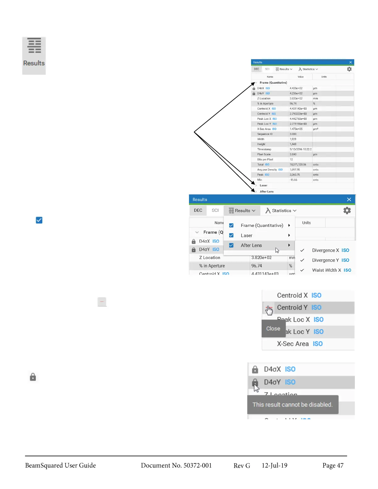 The Results window displays all enabled results items. Most items can be disabled and each group