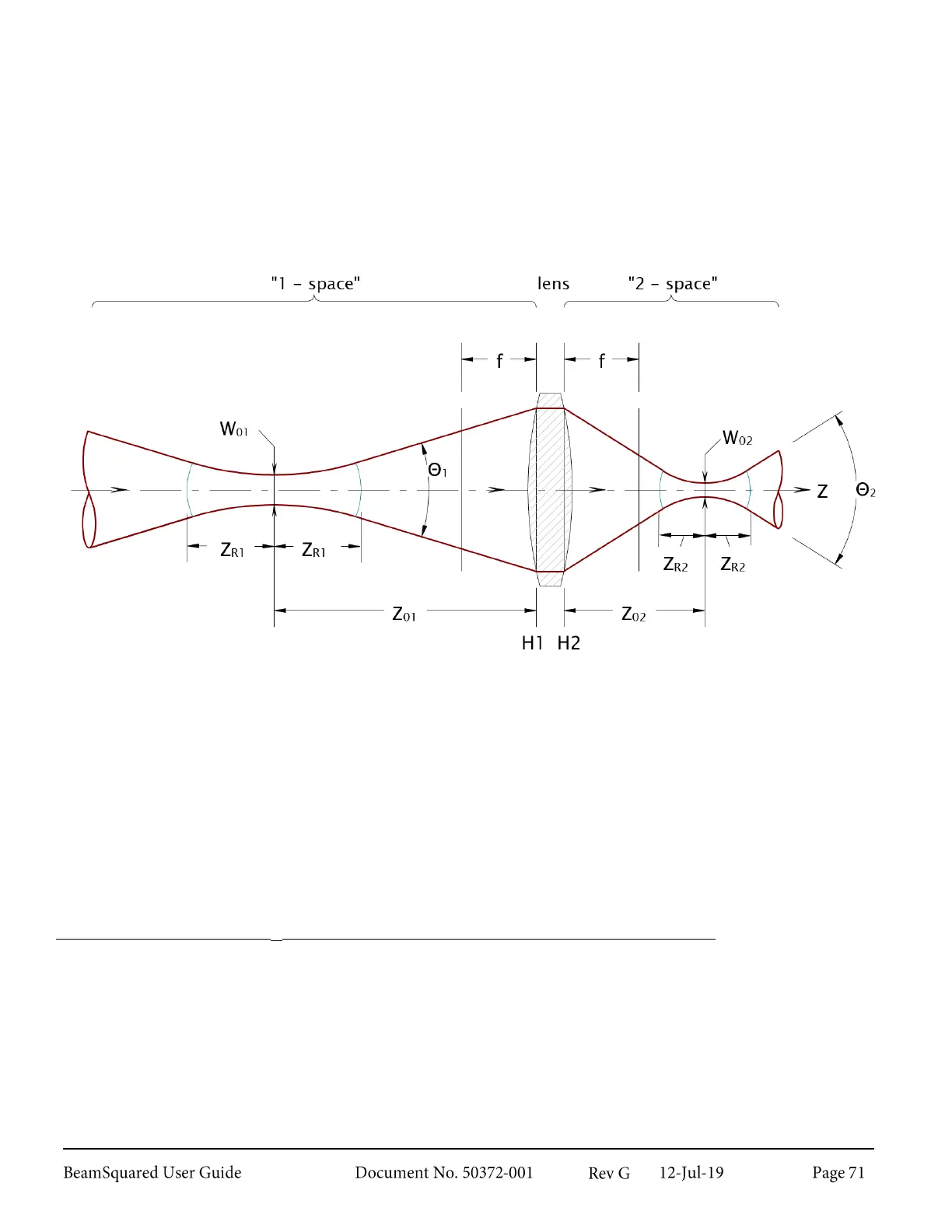 to the focal length of the lens. Observe that for small beams in this region, there is a drastic change in Z