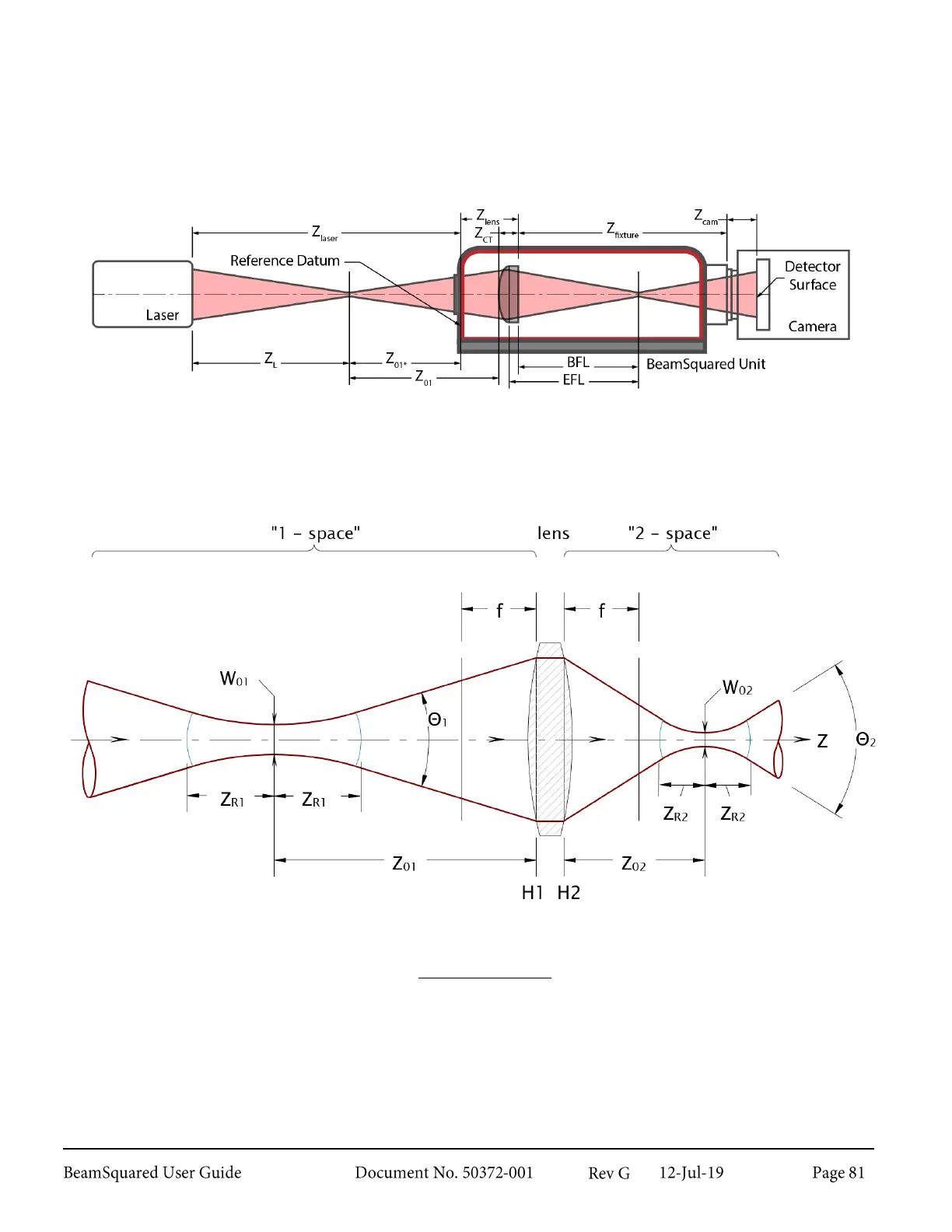 measured from the reference datum which is the red BeamSquared case at the input aperture.