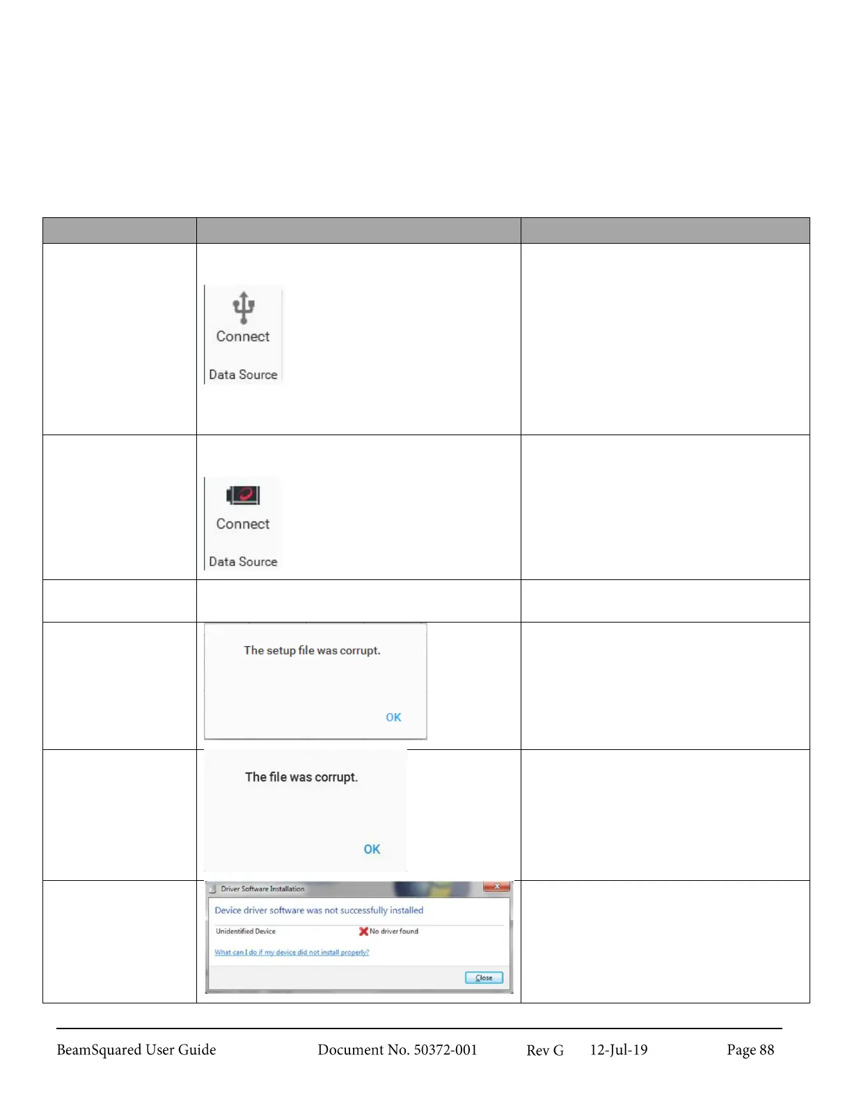 Dialog boxes may occasionally appear in the software as warnings and error messages. This chapter is