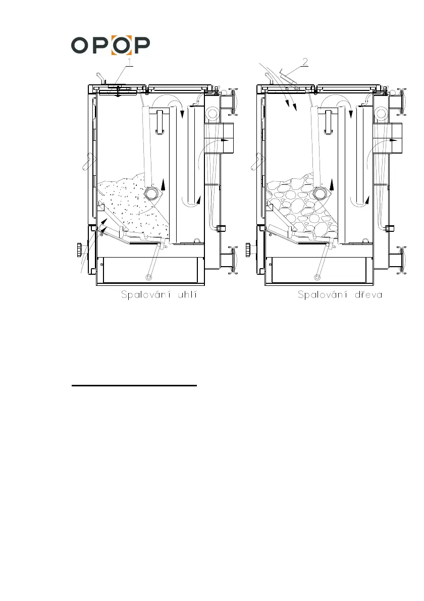 Obr. – spalování uhlí – coal combustion; spalování dřeva – wood