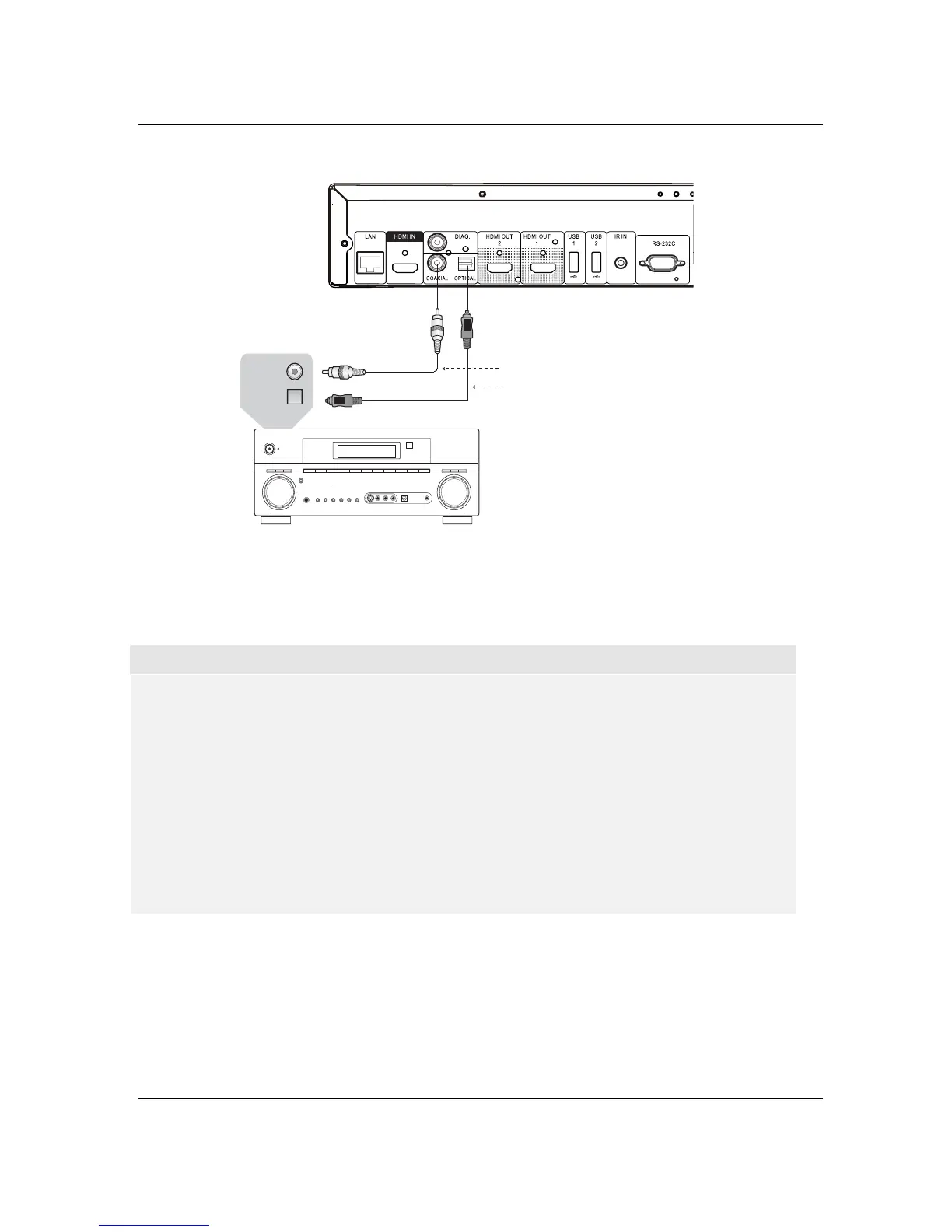 terminal on your A/V receiver. For detailed setup of coaxial/optical signals, refer to page 66.